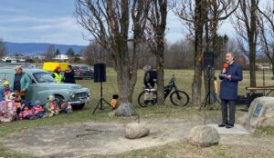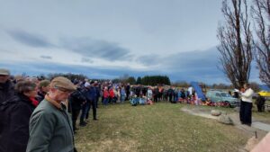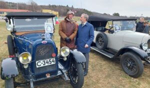 The commemorative event opened with greetings from representatives of the sponsoring organizations Landsforbundet for Motorhistoriske Kjøretøy (National Association for Historic Motor Vehicles) and Bekkelagshøgda Lokalhistoriske Forening (Bekkelagshøgda Local History Association), followed by remarks from Norwegian Secretary of State for Transport Cecilie Knibe Kroglund, Italian Ambassador to Norway Stefano Nicoletti, and a Counsellor from the U.S. Embassy, Graham Harlow. Following the presentations, Secretary of State Kroglund laid a wreath at the commemorative plaque on the hill, while the national anthems played, and a parade of vintage airplanes took to the skies.